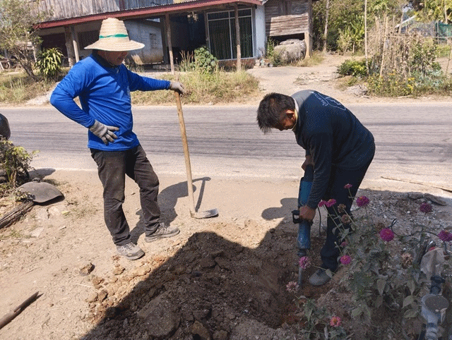 กองช่างติดตั้งมิเตอร์น้ำ บ้านหินตั้ง ม.3