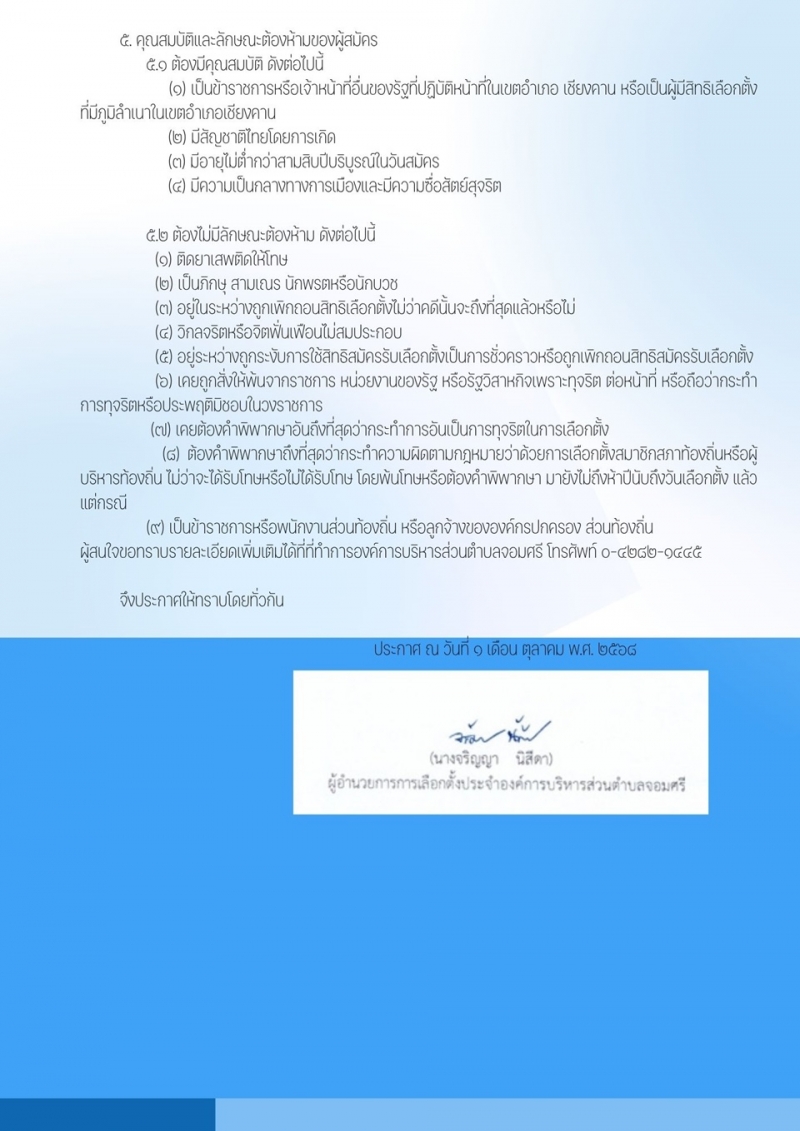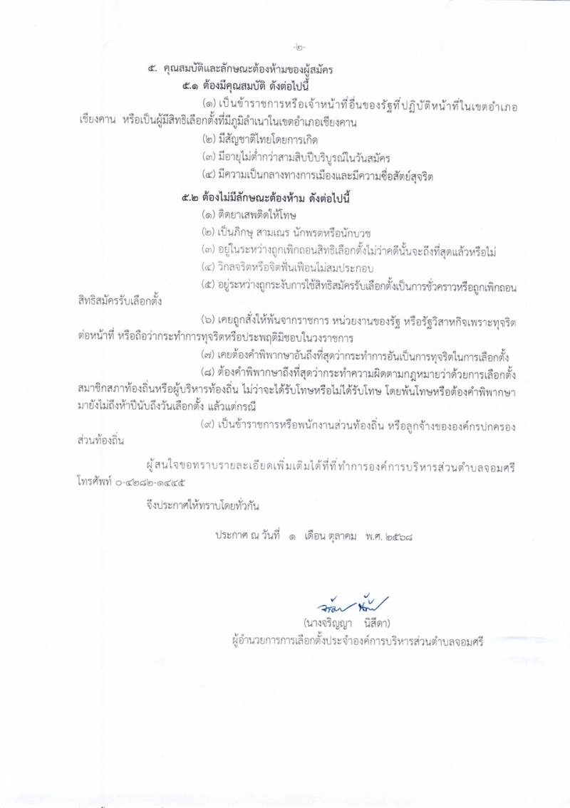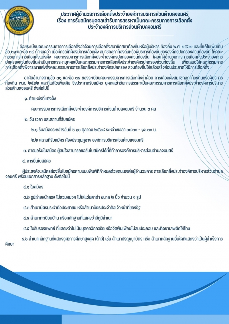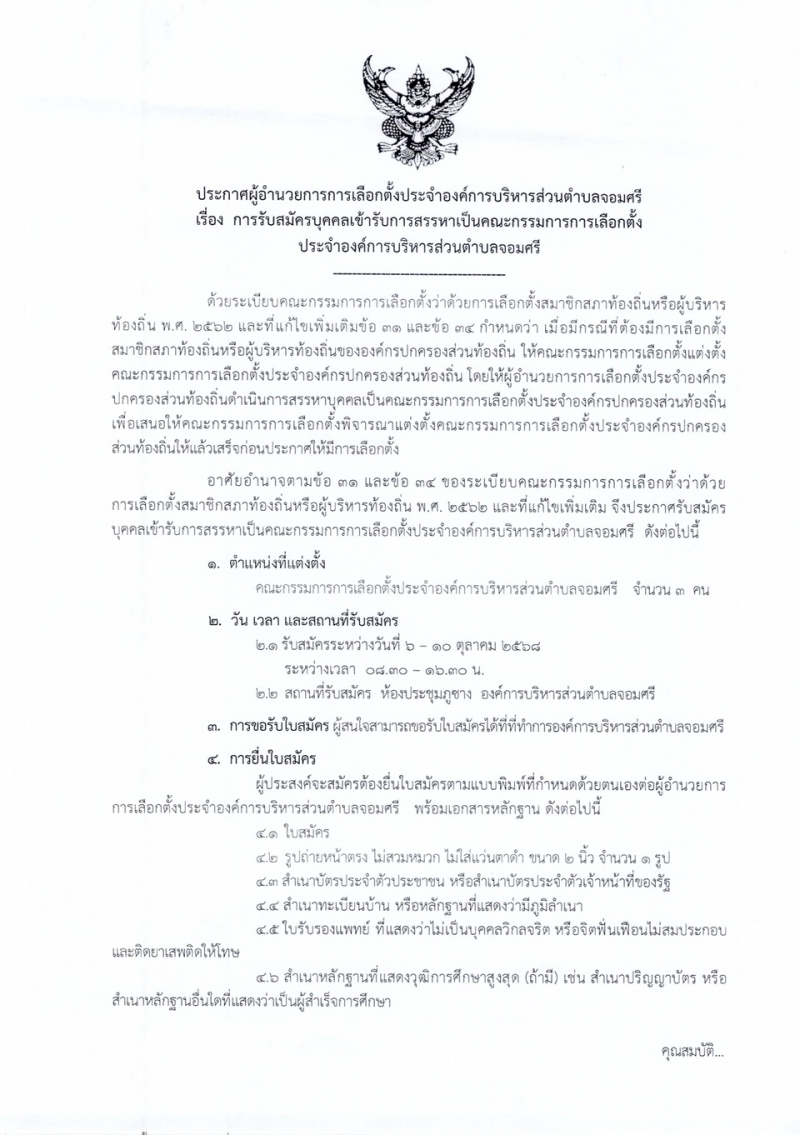 ประกาศ เรื่อง รับสมัครบุคคลเข้ารับการสรรหาเป็นคณะกรรมการการเลือกตั้งประจำองค์การบริหารส่วนตำบลจอมศรี