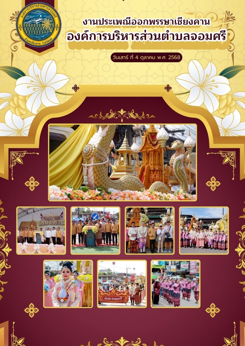 วันเสาร์ ที่ 4 ตุลาคม 2568 นายชัยพจน์ จรูญพงศ์ ผู้ว่าราชการจังหวัดเลย เป็นประธานในพิธีเปิดงานประเพณีออกพรรษาที่เชียงคาน ประจำปี 2568 โดยมีรองผู้ว่าราชการจังหวัดเลย หัวหน้าส่วนราชการ พร้อมด้วยนายอภินันต์ สุวรรณโค นายอำเภอเชียงคาน กล่าวถึงวัตถุประสงค์ของการจัดงาน พร้อมด้วยส่วนราชการ ประชาชนเข้าร่วมพิธีเปิด โดย นายพีรพจน์ หมื่นหาวงศ์ นายกองค์การบริหารส่วนตำบลจอมศรี ผู้บริหาร เจ้าหน้าที่ สมาชิกสภาองค์การบริหารส่วนตำบลจอมศรี ผู้นำชุมชน ประชาชน อบต.จอมศรี นำขบวนแห่ปราสาทผึ้ง นางรำ ขบวนเทิดพระเกียรติ ร่วมงาน โดยมีภาคเอกชน ประชาชน นักท่องเที่ยวเข้าร่วมงานเป็นจำนวนมาก