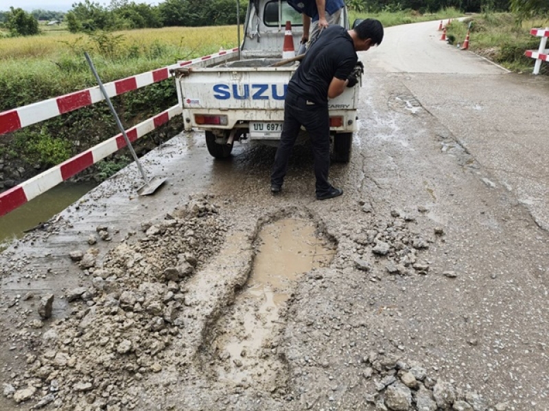 วันอังคาร ที่ 11 พฤศจิกายน 2568 องค์การบริหารส่วนตำบลจอมศรี ได้มอบหมายให้กองช่างซ่อมแซมถนนสายธาตุ-จอมศรี
