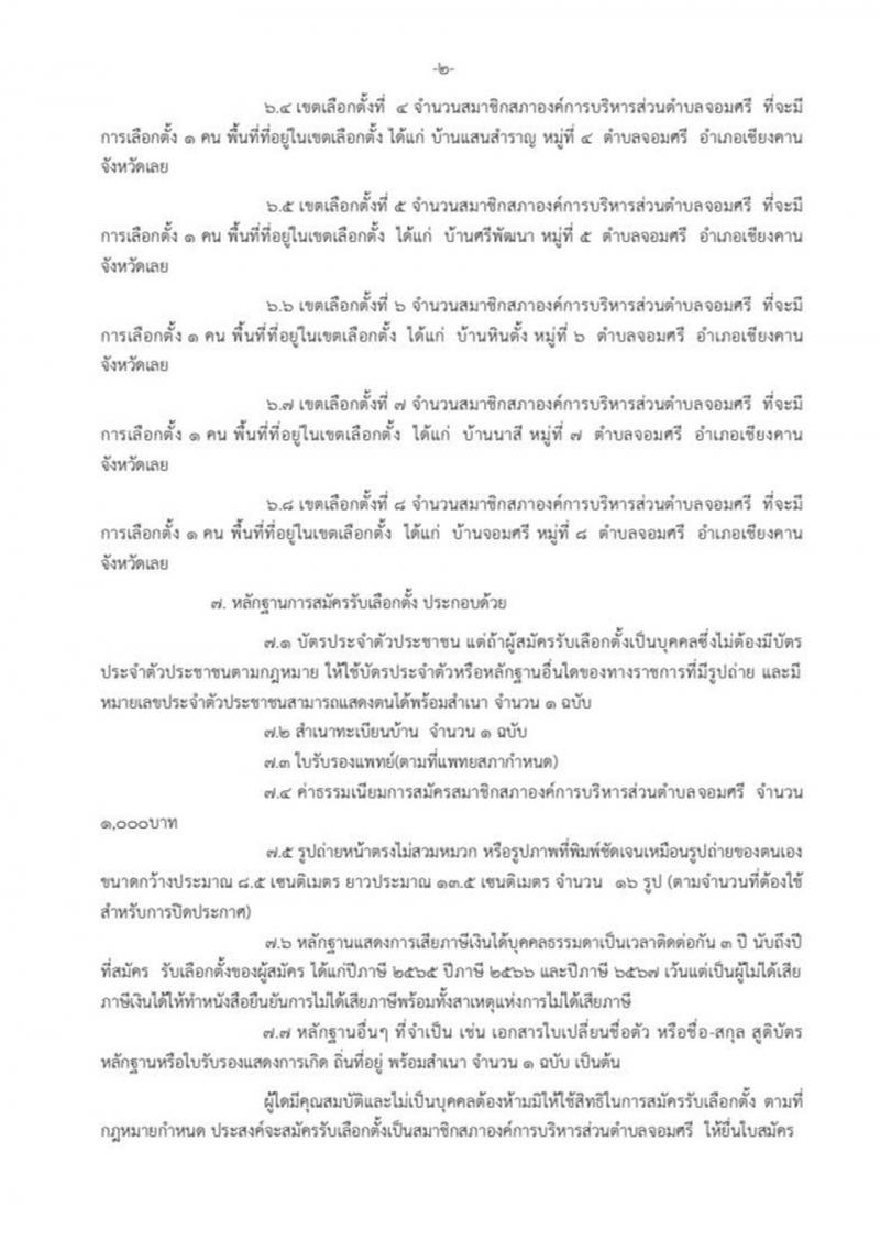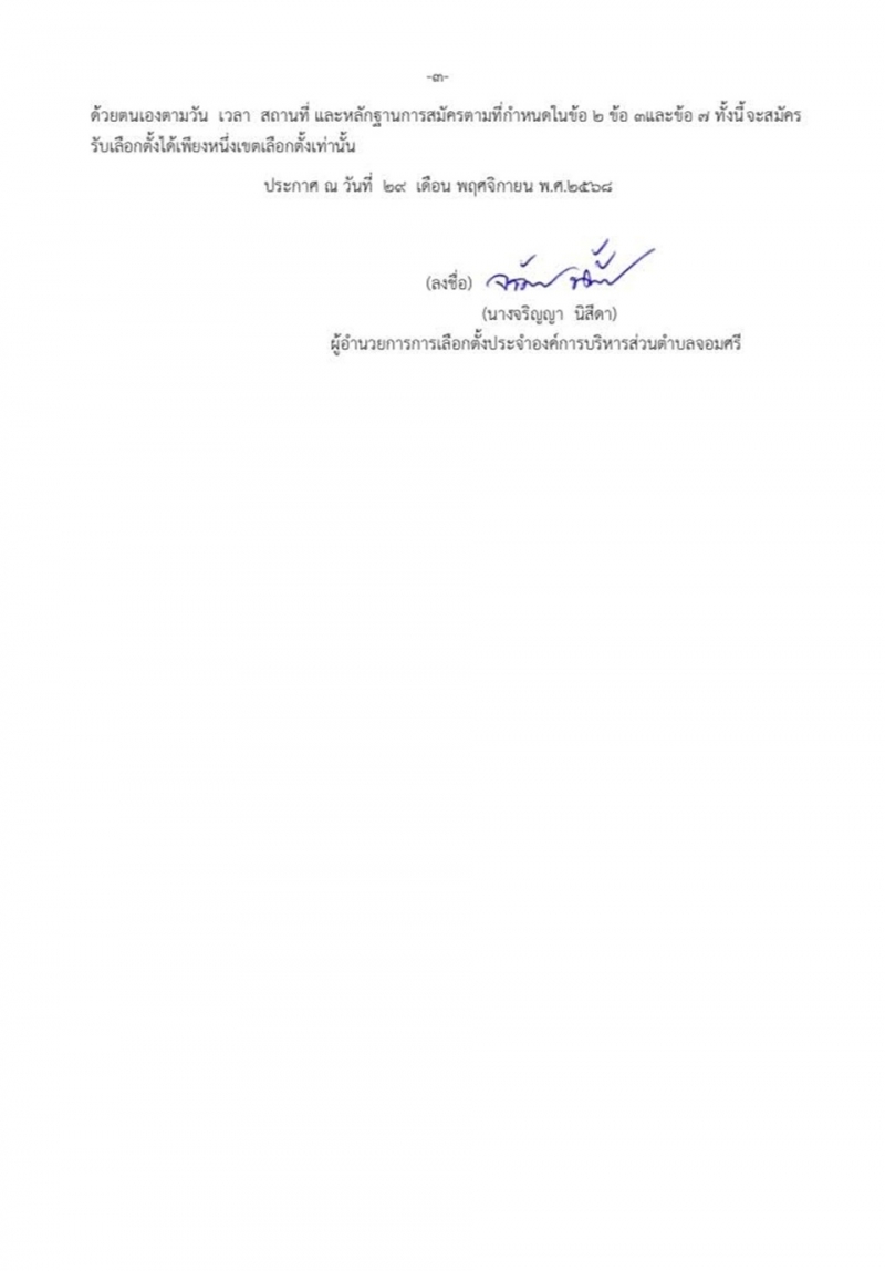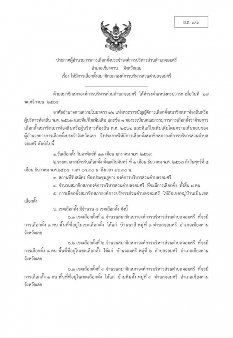 เรื่อง ให้มีการเลือกตั้งสมาชิกสภาองค์การบริหารส่วนตำบลจอมศรี