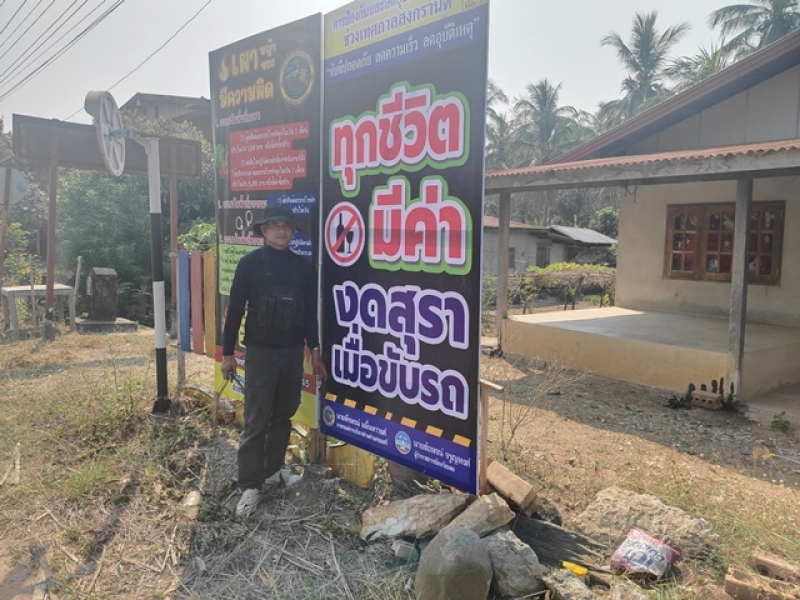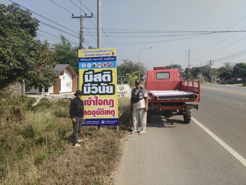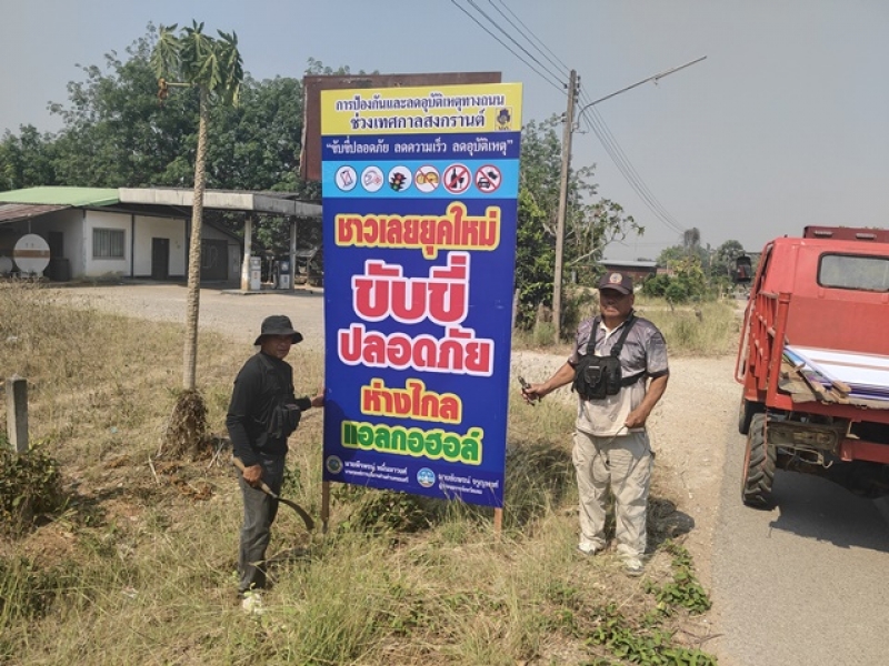 วันพฤหัสบดี ที่ 9 เมษายน 2569 องค์การบริหารส่วนตำบลจอมศรี ได้มอบหมายให้เจ้าหน้าที่งานป้องกันฯ ติดตั้งป้ายรณรงค์การป้องกันและลดอุบัติเหตุทางถนนช่วงสงกรานต์