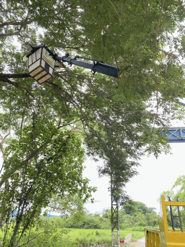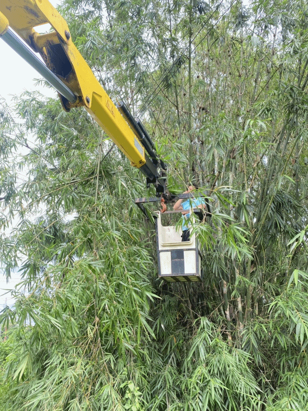 ตัดกิ่งไผ่ที่ล้มพาดสายไฟฟ้า หน้าวัดป่าศรีพัฒนาราม ...