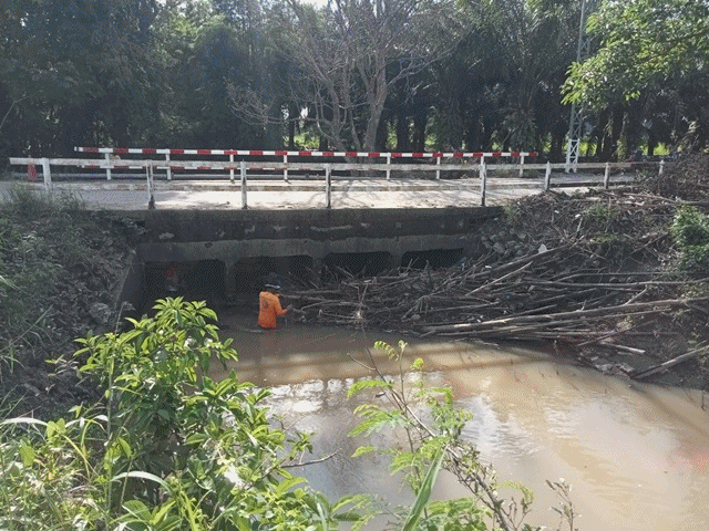 งานป้องกันฯ กำจัดสิ่งกีดขวางทางน้ำบริเวณสะพาน