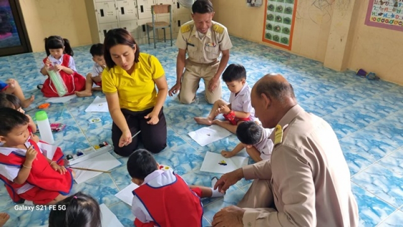 วันที่ 28 สิงหาคม 2566 ทีมบริหาร อบตจอมศรีนำทีมโดยท่านรองซอม สุพร เลขาอาวุธ มีมูล นักวิชาการศึกษา มาตรวจเยี่ยมและให้กำลังใจคุณครูศูนย์เด็กนาสี/พร้อมทีมกองช่าง มาดูจุดที่จะต้องปรับปรุงเพิ่ม เช่นฝ้าเพดาน รางนำฝน หลังคากันแดดสนามเด็กเล่นและพื้นตรงที่เด็กเด็กนั่งทานข้าว