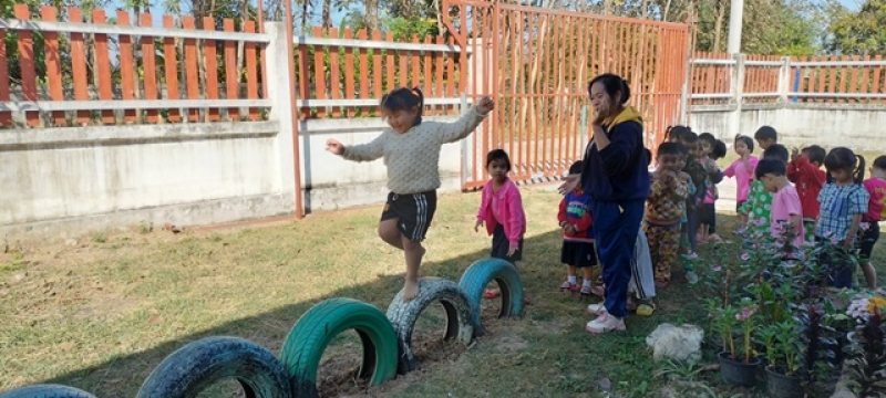 วันพุธ ที่ 4 มกราคม 2569 งานวิชาการศึกษาบริหารงานโดย นายพีรพจน์ หมื่นหาวงศ์ นายกองค์การบริหารส่วนตําบลจอมศรี จัดกิจกรรมเดินทรงตัวบนล้อรถ (ล้อยางรถยนต์เก่า) เป็นกิจกรรมกลางแจ้งที่ช่วยเสริมสร้างพัฒนาการกล้ามเนื้อมัดใหญ่ ความแข็งแรงของขา ฝึกสมาธิ และทักษะการทรงตัวของเด็ก  และ การจัดกิจกรรม เล่นเกมการส่งลูกบอลไปข้างหลัง ฝึกให้เด็กลำเลียงลูกบอลเพื่อส่งต่อให้เพื่อนที่อยู่ข้างหลังไปจนถึงคนสุดท้าย ทำให้มีความรัก และสามัคคีกัน และทำให้เด็กได้รู้จักสีต่างๆ เช่น ลูกบอลอยู่ในมือตนเองสีอะไรให้บอกสีของลูกบอลได้ เด็กมีความภาคภูมิที่ตอบคำถามได้