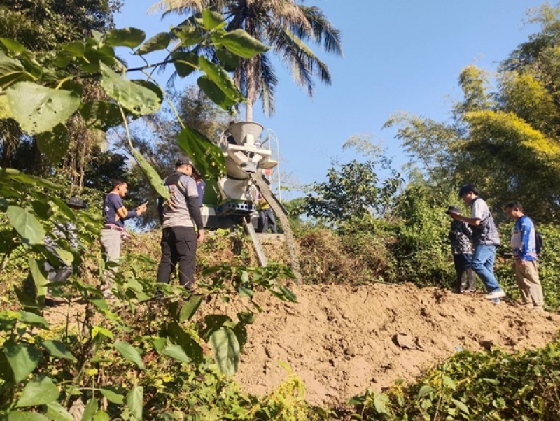 วันพฤหัสบดี ที่ 5 มกราคม 2569 ผู้บริหาร องค์การบริหารส่วนตําบลจอมศรี นำเจ้าหน้าที่ลงพื้นที่ดำเนินการสร้างสะพานข้ามดอนหอ บ้านหินตั้ง