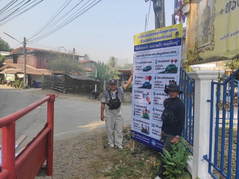 วันพฤหัสบดี ที่ 9 เมษายน 2569 องค์การบริหารส่วนตำบลจอมศรี ได้มอบหมายให้เจ้าหน้าที่งานป้องกันฯ ติดตั้งป้ายรณรงค์การป้องกันและลดอุบัติเหตุทางถนนช่วงสงกรานต์