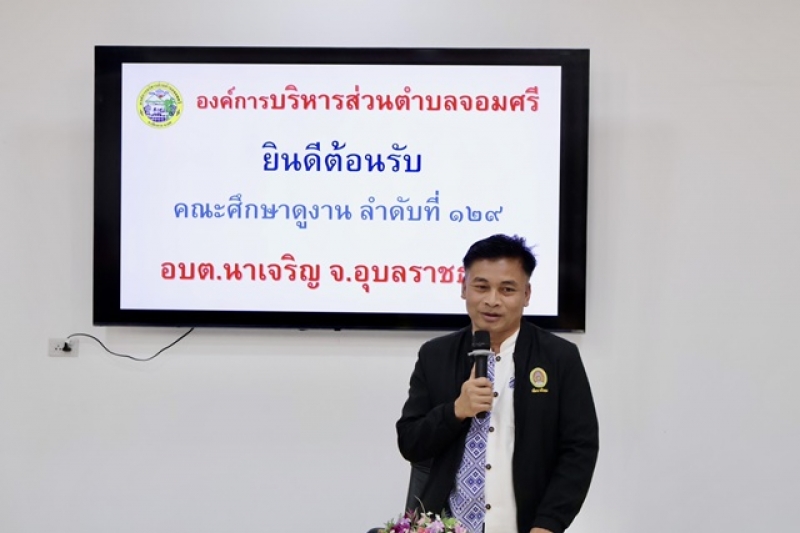 วันพฤหัสบดี ที่ 26 ธันวาคม 2567 นายพีรพจน์ หมื่นหาวงศ์ นายกองค์การบริหารส่วนตำบลจอมศรี ทีมผู้บริหาร สมาชิกสภาองค์การส่วนตำบลจอมศรี เจ้าหน้าที่ พนักงาน ลูกจ้าง อบต.จอมศรี ต้อนรับคณะศึกษาดูงานจาก อบต.นาเจริญ จ.อุบลราชธานี
