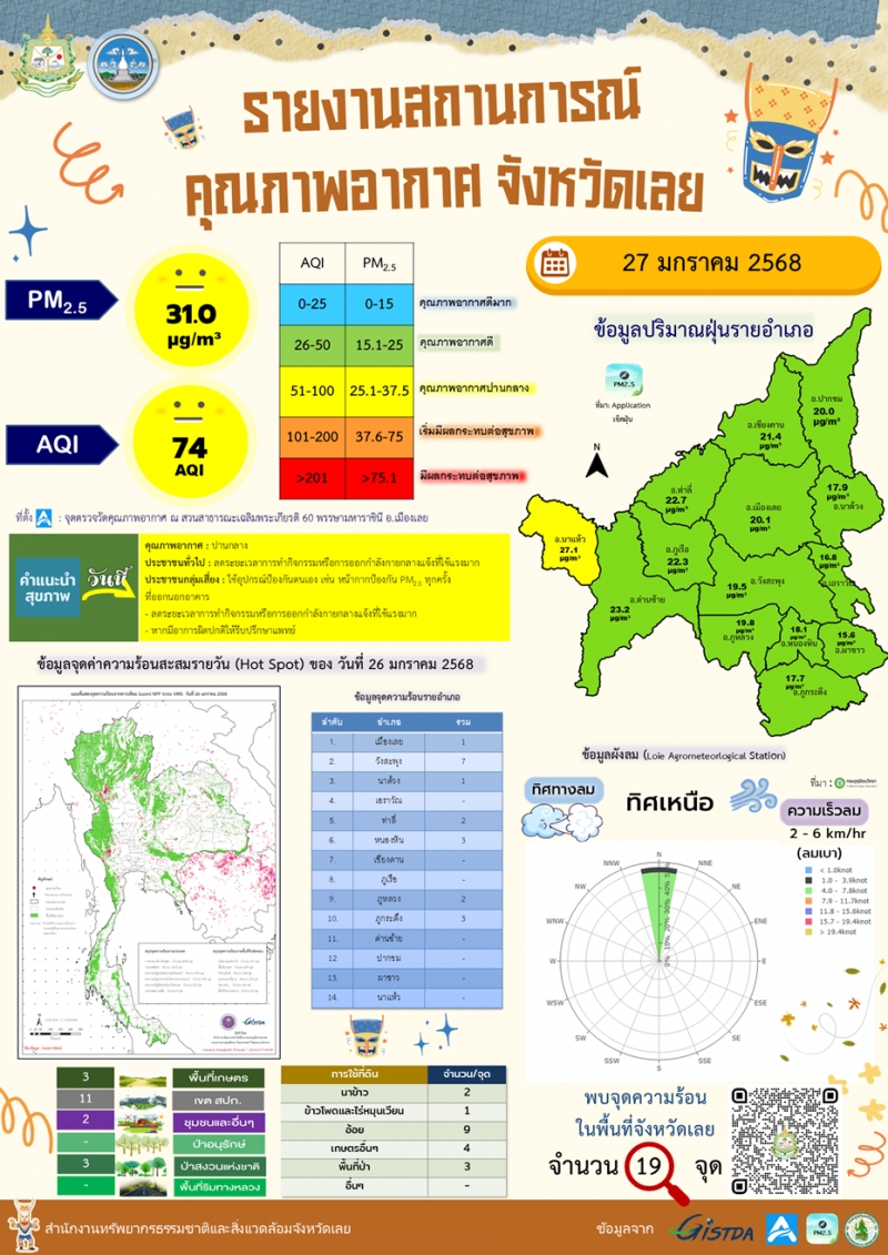 สาธารณสุขจังหวัดเลย รายงานบปริมาณฝุ่น PM 2.5
