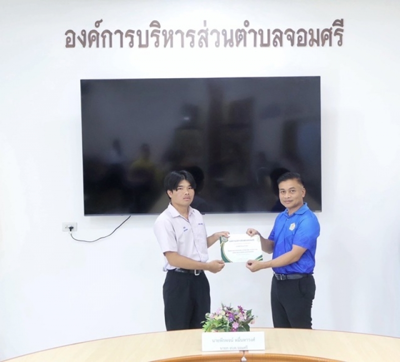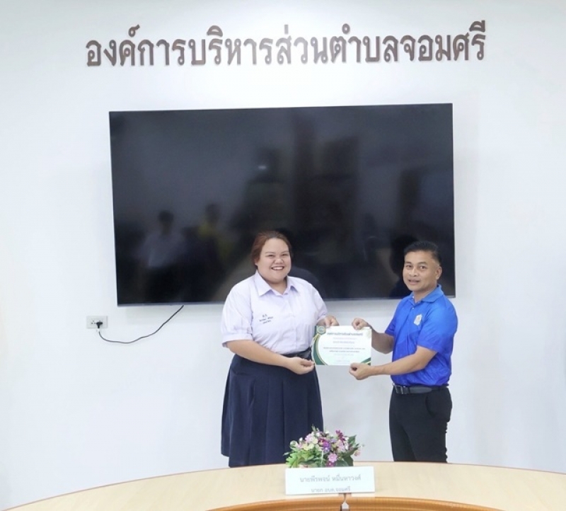 วันศุกร์ ที่ 2 พฤษภาคม 2568 นายพีรพจน์ หมื่นหาวงศ์ นายกองค์การบริหารส่วนตำบลจอมศรี มอบเกียรติบัตรและค่าตอบแทนให้กับนักเรียนโครงการจ้างนักเรียน นักศึกษา ปฏิบัติงานในช่วงปิดภาคเรียนเพื่อแบ่งเบาภาระผู้ปกครอง