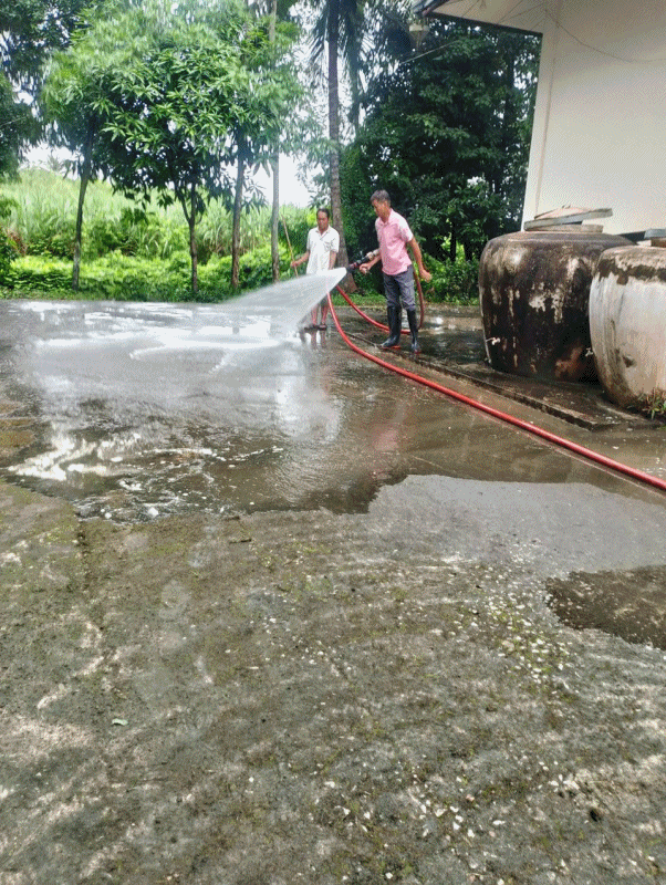 งานป้องกันฯ ทำความสะอาดพื้นวัดศรีหินตั้ง ม.6