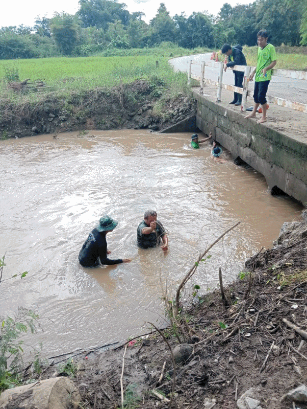กำจัดสิ่งกีดขวางทางน้ำไหล บริเวณสะพานโค้งตัวเอส
