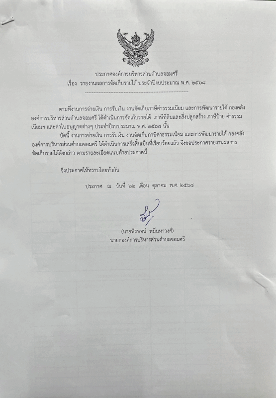 ประกาศองค์การบริหารส่วนตำบลจอมศรี