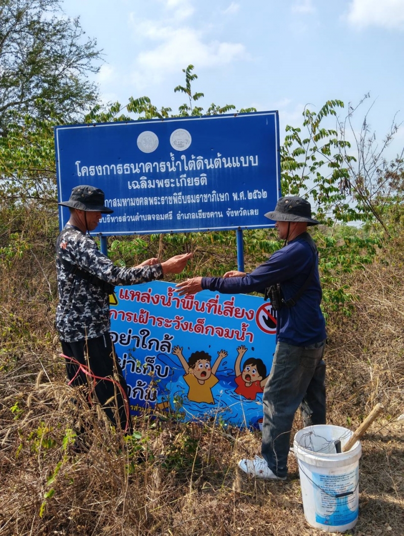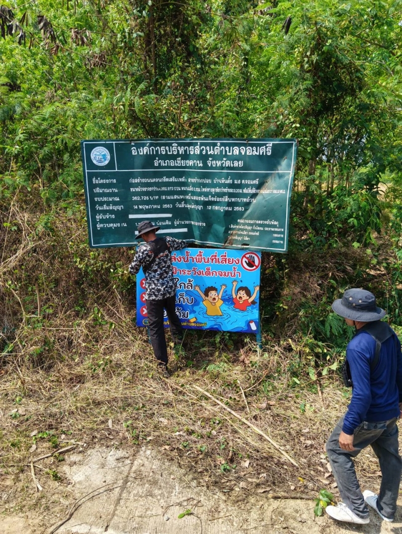 วันพุธ ที่ 4 มีนาคม 2569 องค์การบริหารส่วนตำบลจอมศรี ได้มอบหมายให้งานป้องกันติดป้ายแหล่งน้ำพื้นที่เสี่ยงการเฝ้าระวังเด็กจมน้ำภายในสระน้ำสาธารณะตำบลจอมศรี