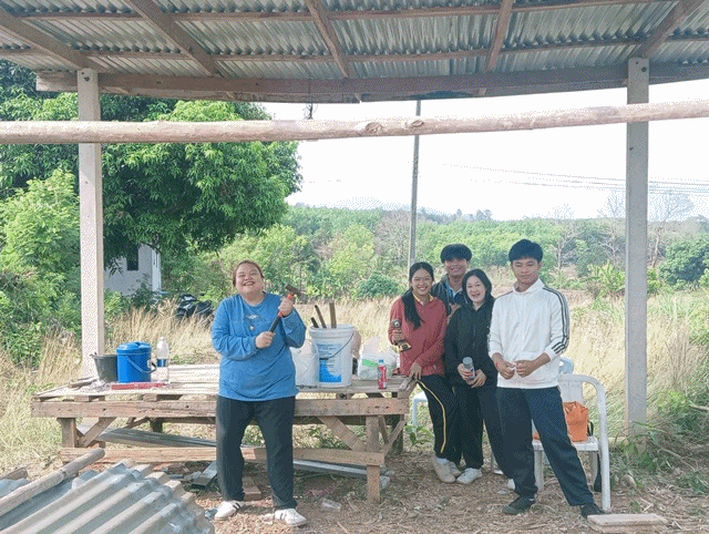 ซ่อมแซมบ้านเรือนที่ได้รับความเสียหายจากวาตภัย